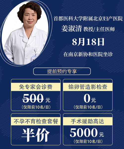 为了让更多的求子家庭能接受专业规范医疗服务,2019年8月10日—8月31日,南京家和医院(南京新协和医院®)特邀原首都医科大学附属北京妇产医院主任医师姜淑清教授领衔会诊,南京医科大学第二附属医院东院副院长应小燕主任医师、江苏省人民医院妇产科主任杨乃明主任医师、南京市中西医结合医院妇产科主任刘德佩等专家联合会诊,为不孕家庭送来好“孕”......【了解专家坐诊详情】